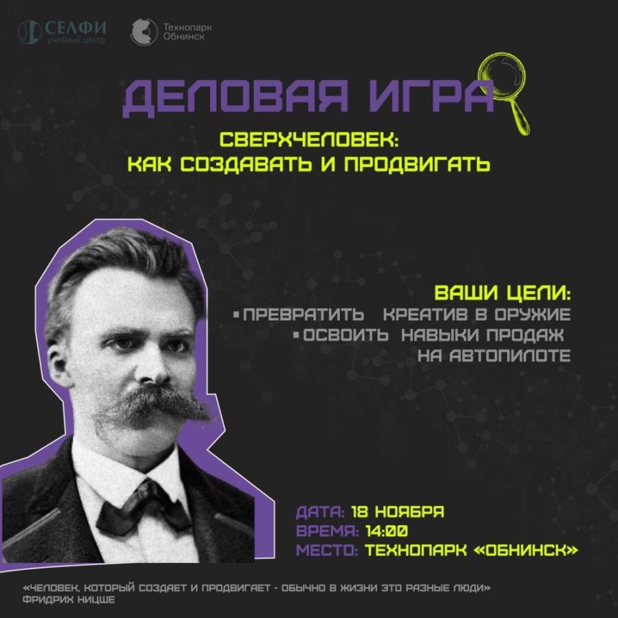 18 ноября 2025 в 14:00 в технопарке «Обнинск» пройдёт деловая игра «Сверхчеловек: как создавать и продвигать». Формат рассчитан на тех, кто хочет развить креативность, потренировать навыки презентации и получить опыт командной работы в условиях реального задания. Участников ждут практические упражнения, разбор кейсов, деловой тендер и трёхчасовая насыщенная программа. Игра позволяет по-новому взглянуть на креативные инструменты, научиться быстро принимать решения и уверенно презентовать свои идеи.