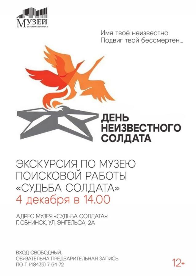 Музей «Судьба солдата» был создан на основе поисковых реликвий времён Великой Отечественной войны. Его основатель – известная всей стране сапёр-подрывник подразделения МЧС по г. Обнинску, единственная в стране женщина-сапёр, руководитель поискового отряда «Обнинские следопыты» Галина Слесарева. О ней много писали в местной и центральной прессе, создано несколько фильмов. Военно-поисковое объединение «Обнинские следопыты», которым руководит Галина Владимировна, проводит поиск, раскопки безымянных захоронений (окопы, блиндажи, траншеи). По найденным медальонам ведётся розыск родственников солдат, считавшихся пропавшими без вести, как с советской, так и с немецкой стороны. Останки солдат перезахораниваются в братские могилы с сообщением родственникам о месте захоронения.