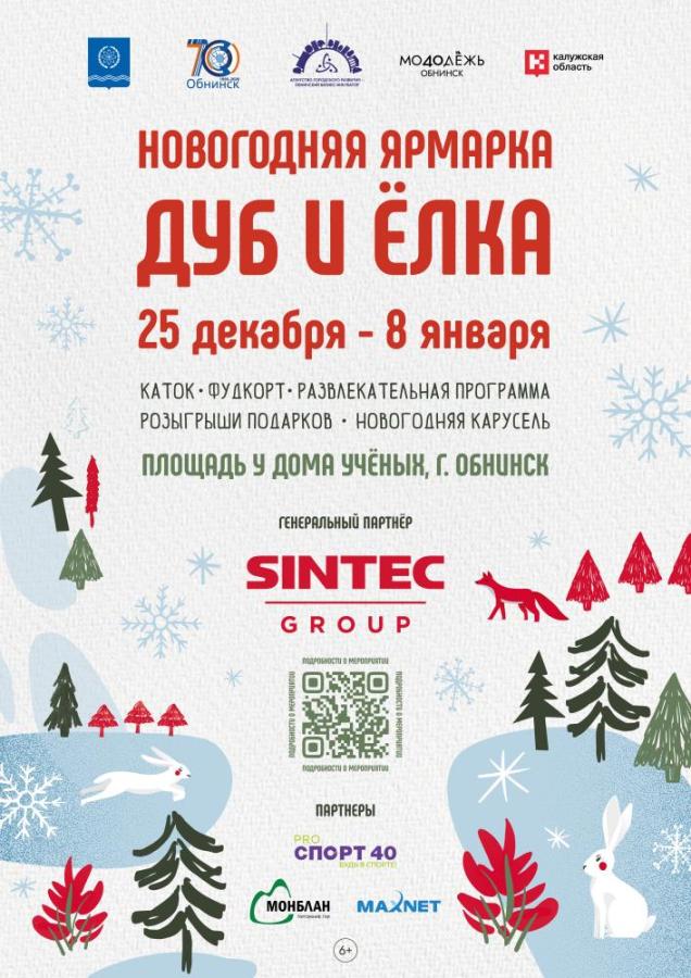 С 25 декабря 2025 по 8 января 2026 на площади возле Дома учёных пройдёт фестиваль-ярмарка «Дуб и ёлка». Вас будут ждать каток, фудкорт, развлекательная программа, розыгрыш подарков, новогодняя фотозона.