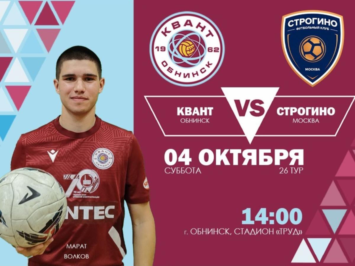 4 октября 2025 в 14:00 на стадионе «Труд» в Обнинске пройдёт футбольный матч ФК «Квант» (Обнинск) и ФК «Строгино» (Москва).