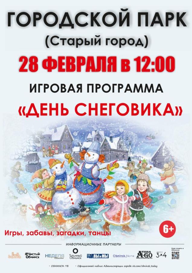28 февраля 2026 с 12:00 до 13:00 в Городском парке Обнинска пройдёт игровая программа «День Снеговика в России».