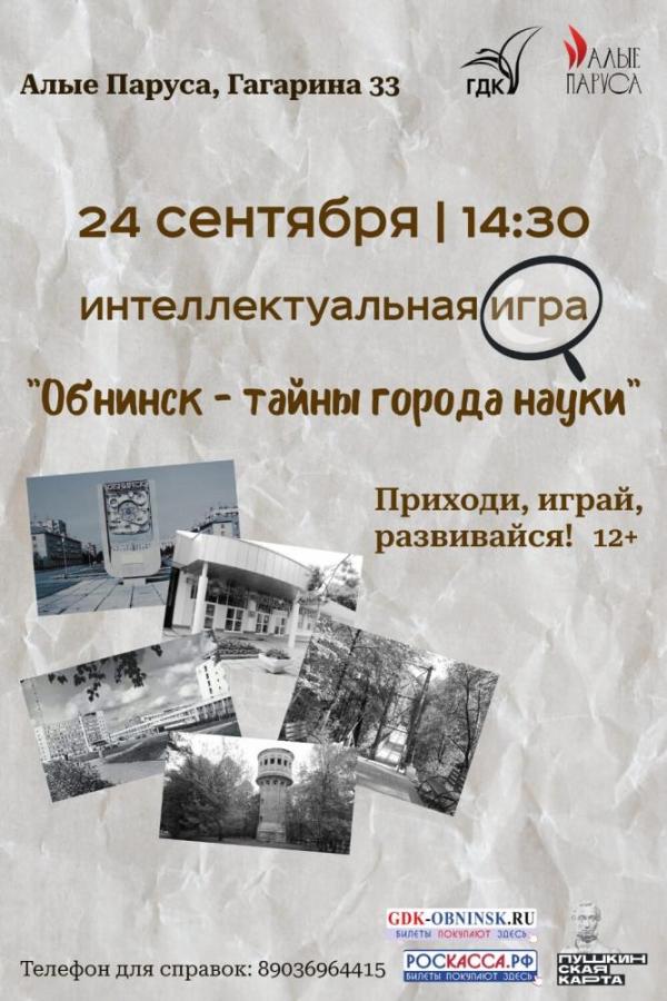 Купить билеты - http://gdk-obninsk.ru/board/afisha/intellektualnaja_igra_obninsk_tajny_goroda_nauki/1-1-0-829 .