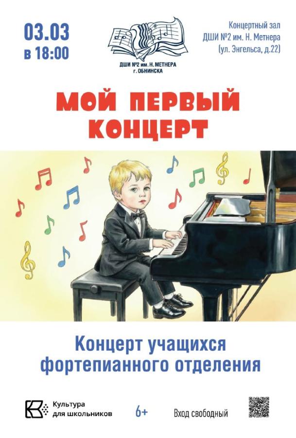 3 марта 2026 в 18:00 в ДШИ №2 им. Н. Метнера в Обнинске пройдёт концерт первоклассников фортепианного отделения, посвящённый женскому дню 8 марта.