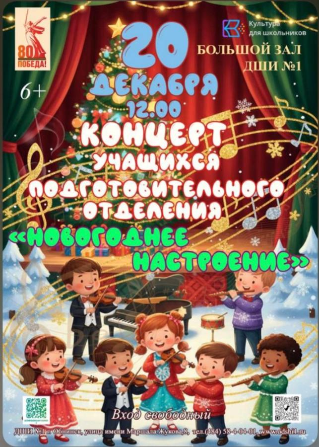 20 декабря 2025 в 12:00 в ДШИ №1 в Обнинске состоится концерт учащихся подготовительного отделения.