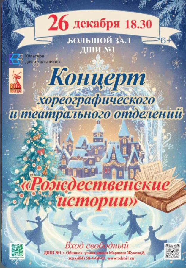 26 декабря 2025 в 18:30 в ДШИ №1 состоится концерт «Рождественские истории» хореографического и театрального отделений.