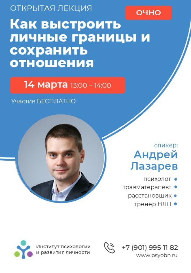 Институт психологии и развития личности приглашает 14 марта 2026 с 13:00 до 14:00 на открытую лекцию «Как выстроить личные границы и сохранить отношения».