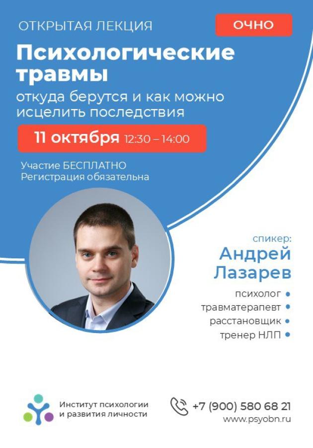 Институт психологии и развития личности приглашаем вас 11 октяьря 2025 с 12:30 до 14:00 на открытую лекцию «Психологические травмы: откуда берутся и как можно исцелить последствия» + Демонстрация. Встреча будет состоять из частей.