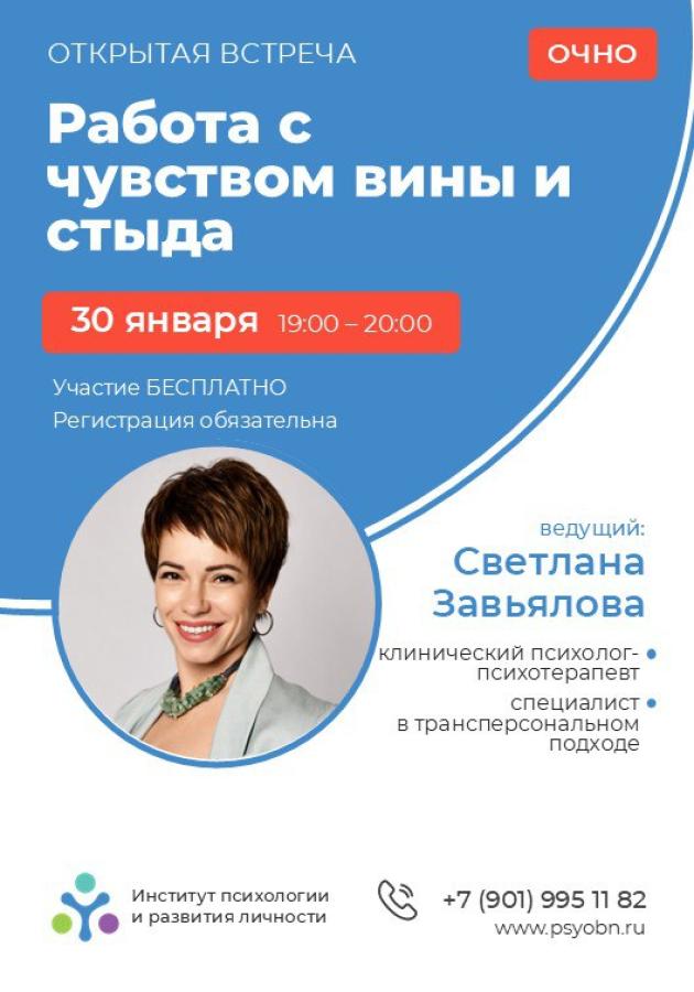 Институт психологии и развития личности приглашает на открытую лекцию «Работа с чувством вины и стыда» 30 января 2026 с 19:00 до 20:00.