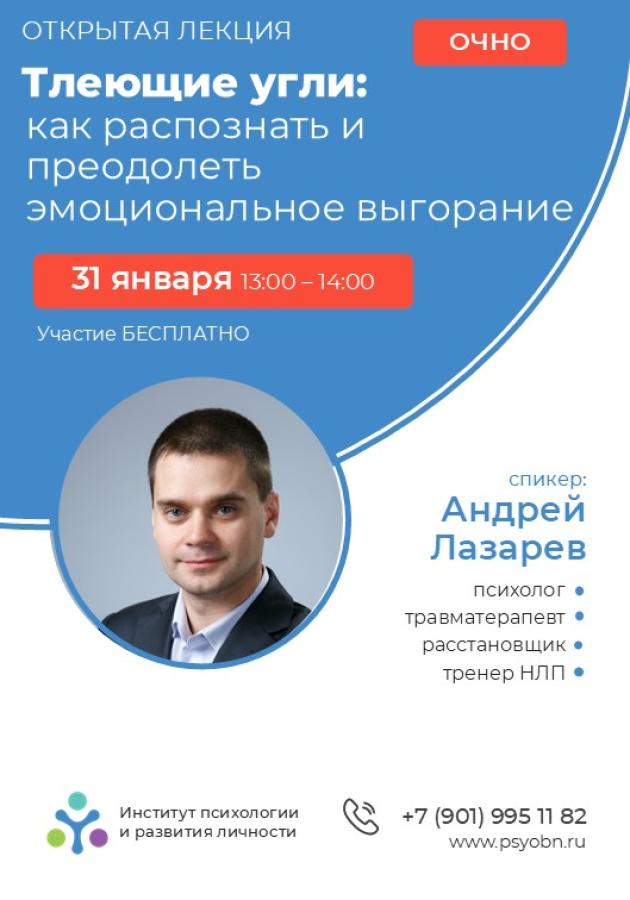Институт психологии и развития личности приглашает 31 января 2026 с 13:00 до 14:00 на открытую лекцию «Тлеющие угли: как распознать и преодолеть эмоциональное выгорание».