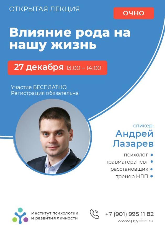 Институт психологии и развития личности приглашает на открытую лекцию «Влияние рода на нашу жизнь» 27 декабря 2025 с 13:00 до 14:00.