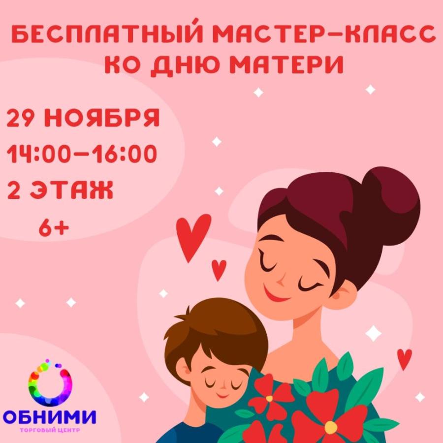 29 ноября 2025 с 14:00 до 16:00 в ТЦ «Обними» состоится бесплатный творческий мастер-класс, где дети создадут своими руками замечательные подарок для любимой мамочки.