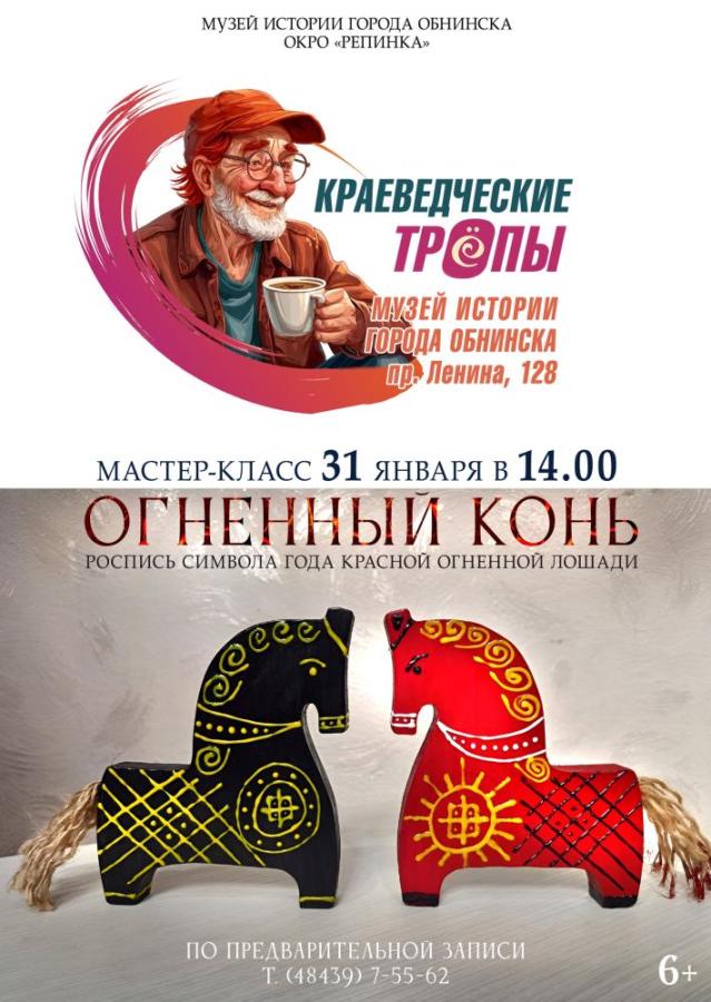 Год Красной Огненной Лошади по восточному календарю начнется 17 февраля 2026 года. У вас есть время создать свой талисман года – Огненного коня – и расписать его древними магическими русскими символами. Краеведы ОКрО «Репинка» подготовили для вас деревянные фигурки-заготовки коней и ждут взрослых и детей от 12 лет 31 января 2026 в 14:00 на мастер-класс «Огненный конь» в Музее истории г. Обнинска.