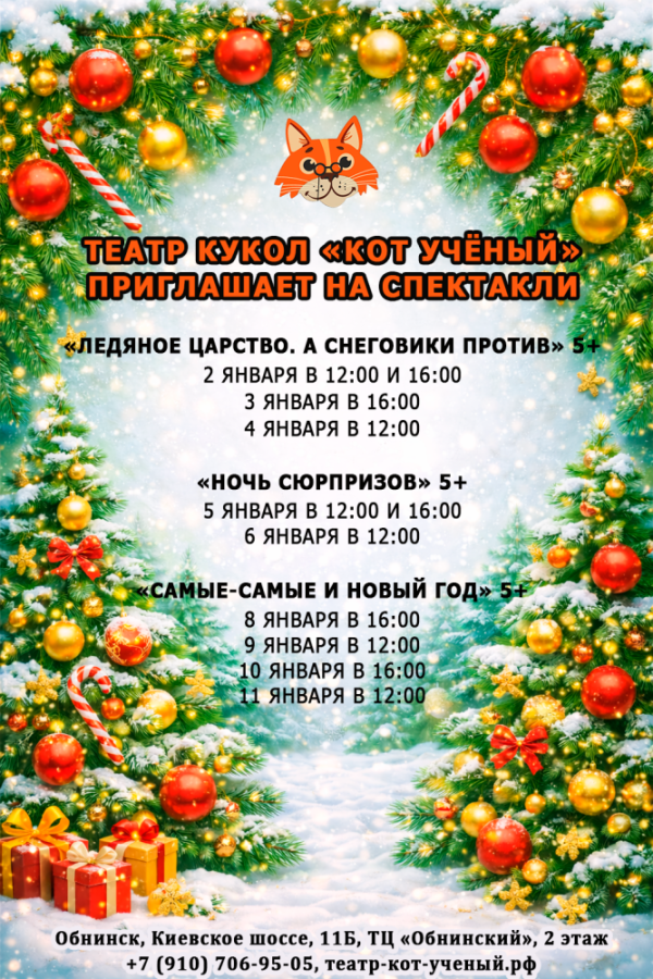 Театр кукол «Кот Учёный» в Обнинске приглашает на спектакли в Новогодние каникулы 2026: