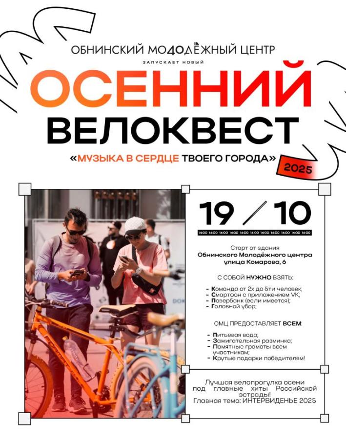 - Приезжай на старт велоквеста 19 октября с 13:30 до 14:00.