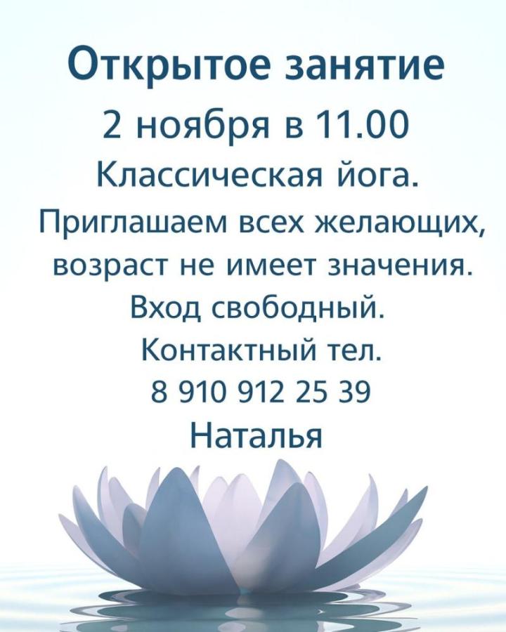 2 ноября 2025 в 11:00 в ДС «Олимп» в Обнинске пройдёт открытое занятие по классической йоге. Вы сможете: