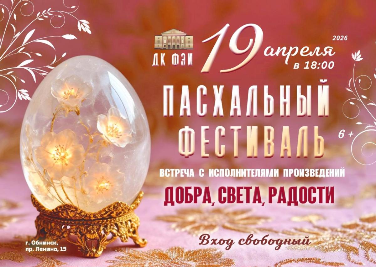 19 апреля 2026 в 18:00 в МАУ «ДК ФЭИ» состоится «Пасхальный фестиваль» — уникальная встреча с исполнителями произведений, наполненных духовностью и теплом.
