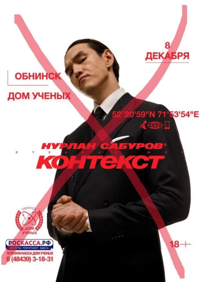 8 декабря 2025 в 20:00 в Доме учёных состоится standUp-концерт Нурлана Сабурова. Абсолютно новая программа «Контекст» в Обнинске. Все шутки написаны специально для этого тура. Их нет на ТВ и в интернете.