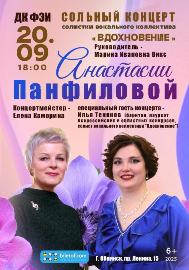 В программе концерта прозвучат известные арии, романсы и песни русских и зарубежных композиторов. Специальный гость концерта — Илья Теняков, баритон, солист вокального коллектива «Вдохновение».