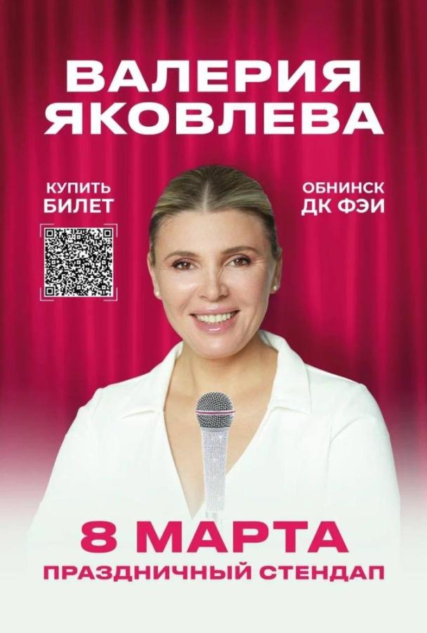 8 марта 2026 в 19:00 в Дк ФЭИ с сольным стендап-концертом выступит Валерия Яковлева - участница шоу «Женский Стендап» на ТНТ.