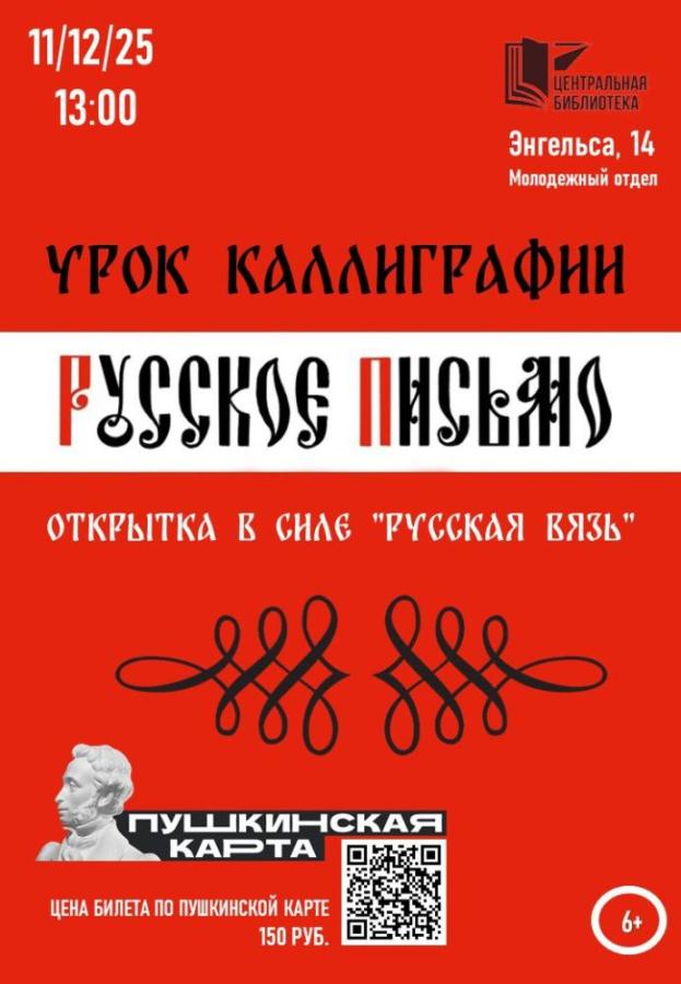 Билеты можно приобрести по Пушкинской карте - https://vmuzey.com/event/zanyatie-po-kalligrafii-russkoe-pismo. Справки по телефону: +7 (484) 58-40-274.