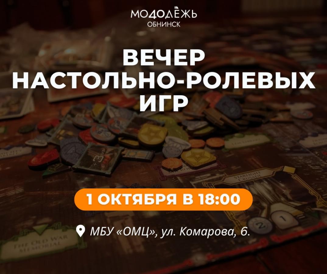 1 октября 2025 в 18:00 в ОМЦ пройдёт вечер настольно-ролевых игр.