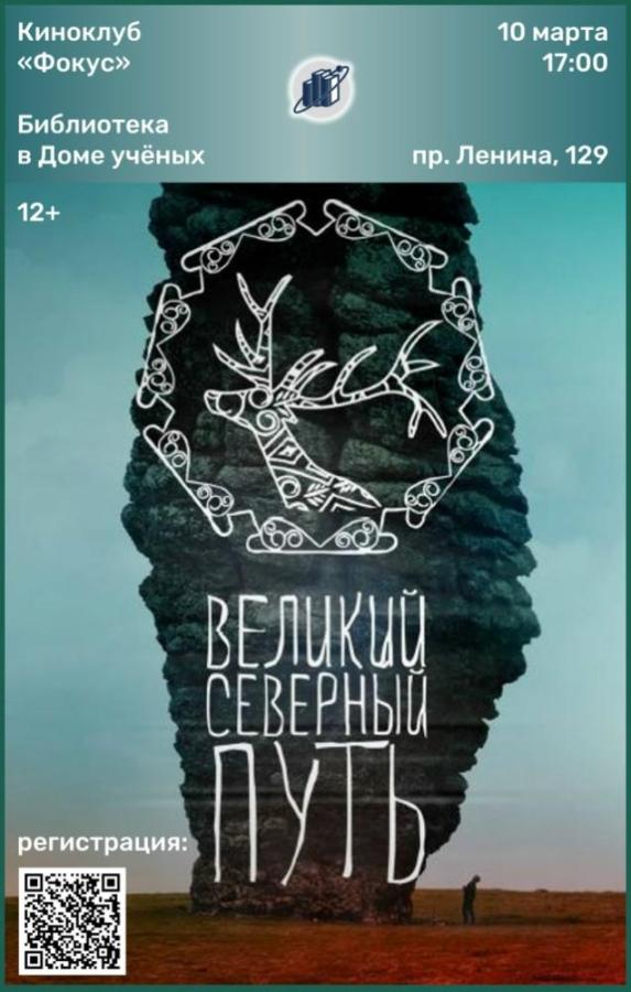 10 марта 2026 в 17:00 в библиотеке №7 в Доме учёных в Обнинске состоится встреча киноклуба «Фокус». Приглашаются читатели на просмотр и обсуждение документального фильма «Великий Северный путь». Автор ленты (режиссёр-документалист, путешественник, этнограф, член РГО Леонид Круглов) вместе со своей командой преодолел 10000 км, пройдя по легендарному маршруту Семёна Дежнёва, великого русского исследователя Северной и Восточной Сибири.