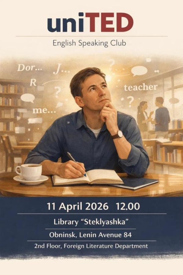 11 апреля 2026 в 12:00 на втором этаже в библиотеке №1 («Стекляшка») состоится очередная встреча клуба «UniTED ».
