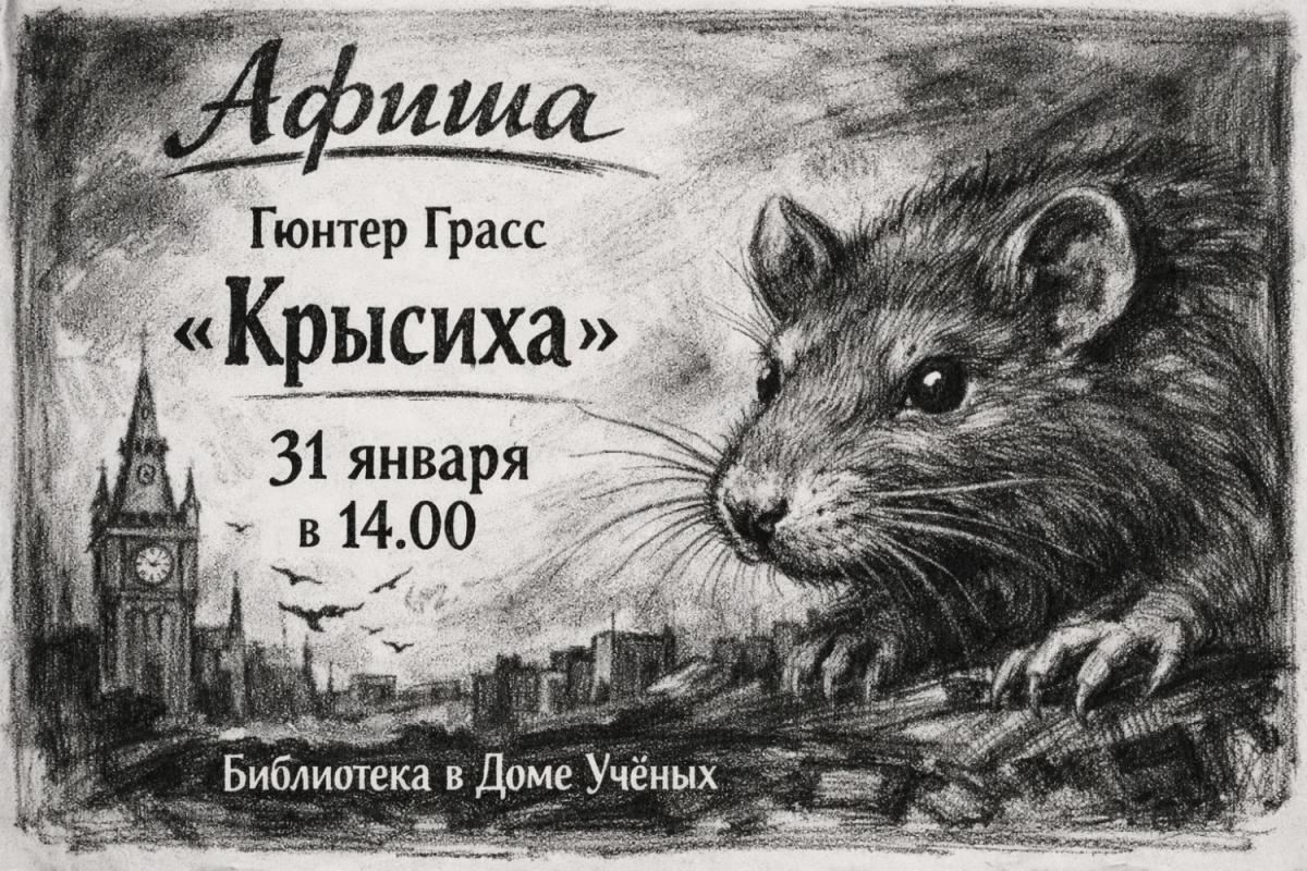 31 января 2025 в 14:00 в библиотеке №7 в Доме учёных состоится встреча книжного клуба «ПаЛитра», посвящённая обсуждению книги «Крысиха» Гюнтер Грасса. Вы углубитесь в мир Гюнтера Грасса, его символику и глубокие темы. Поделитесь своим мнением и впечатлениями, а также насладитесь приятной беседой с другими любителями литературы.
