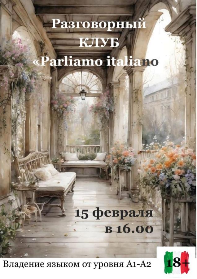 15 февраля 2026 в 16:00 в читальном зале Центральной библиотеки состоится встреча разговорного клуба итальянского языка. Встречи не являются уроками. Цель - общение на итальянском языке для поддержания разговорной речи. Не важно, как это у вас получается.