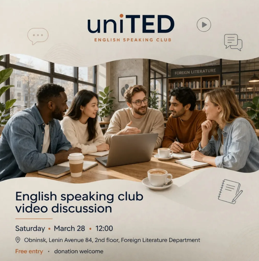 28 марта 2026 в 12:00 в библиотеке №1 («Стекляшка») состоится встреча разговорного клуба «UniTED».