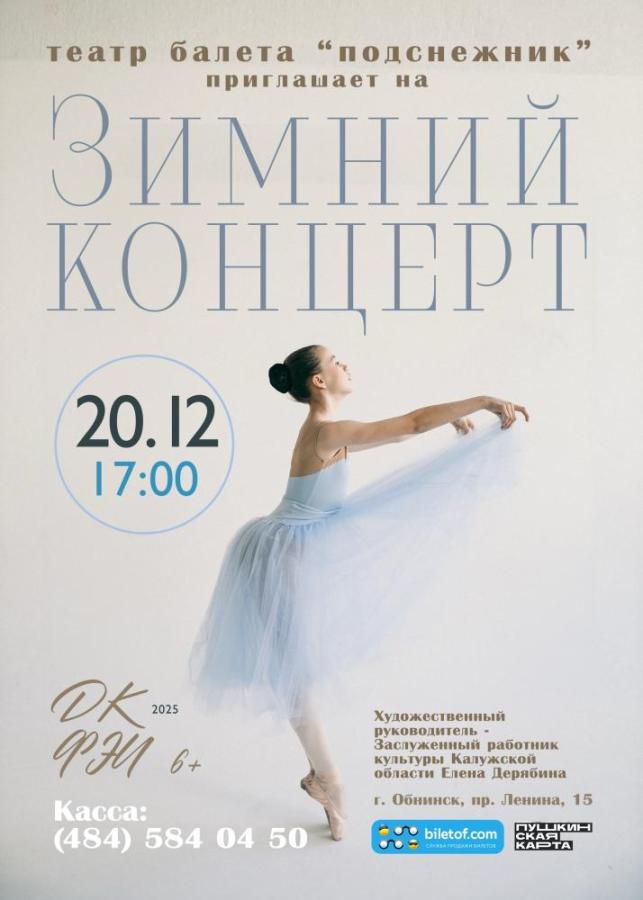 Созданный в 1986 году при «ДК ФЭИ», театр балета «Подснежник» стал неотъемлемой частью культурной жизни Обнинска, даря жителям и гостям города свои незабываемые выступления на протяжении уже 39 лет. Этот коллектив, который с гордостью носит титул лауреата международных фестивалей и престижных конкурсов, продолжает радовать своих зрителей. Под чутким руководством Заслуженного работника культуры Калужской области Елены Львовны Дерябиной театр предлагает зрителям программу, богатую удивительными хореографическими миниатюрами классического репертуара и смелыми экспериментальными номерами. Также вас ждёт множество сюрпризов, которые оставят незабываемые впечатления.